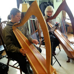 Back to Adria – I have known her for about 20 years now, and she still comes for weekly lessons. She lives and works on her family farm, where she is very involved in their Alpaca breeding herd. Deedee, her mom, is very musical and plays the piano, but I have discouraged her mom from taking up the harp – it is the one thing that Adria can do that no one else in her family can do. Adria performs with me frequently at churches and various events, even at weddings. Her motor skills and coordination are improving in all areas, which I think are a result of her music practice.